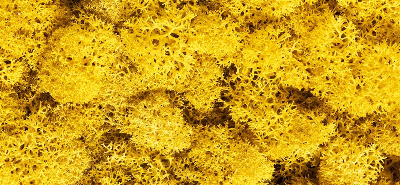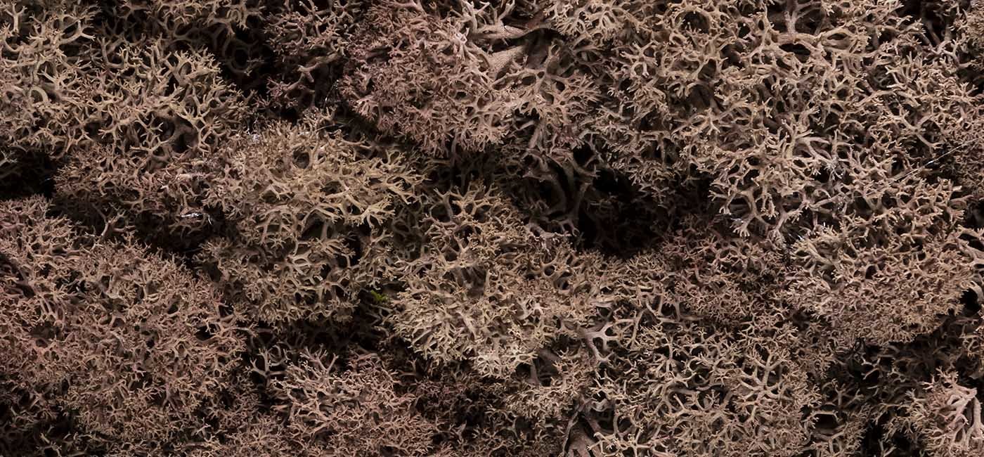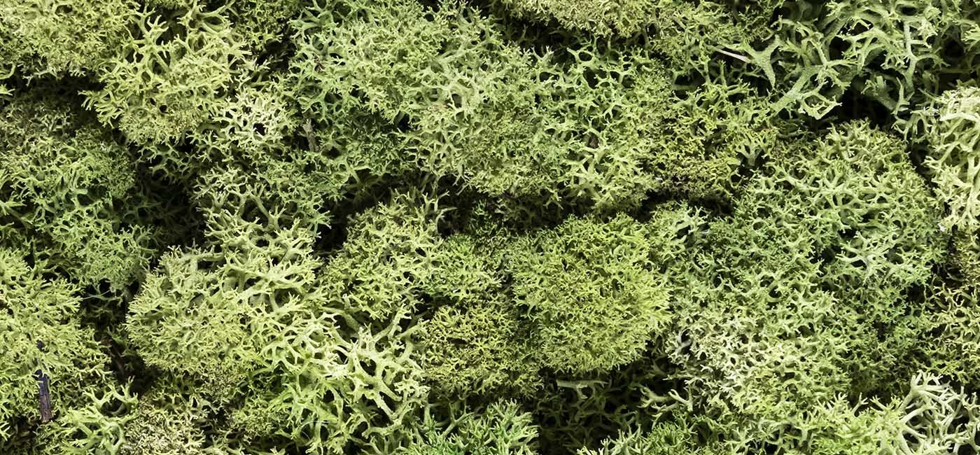 Pour finir, le lichen stabilisé du fait de sa composition, est un véritable médium de création. Nous pouvons imaginer une forme végétale variée comme une cartographie, un tag végétal, une forme 3D, un décor abstrait, le tout étant de rester créatif !