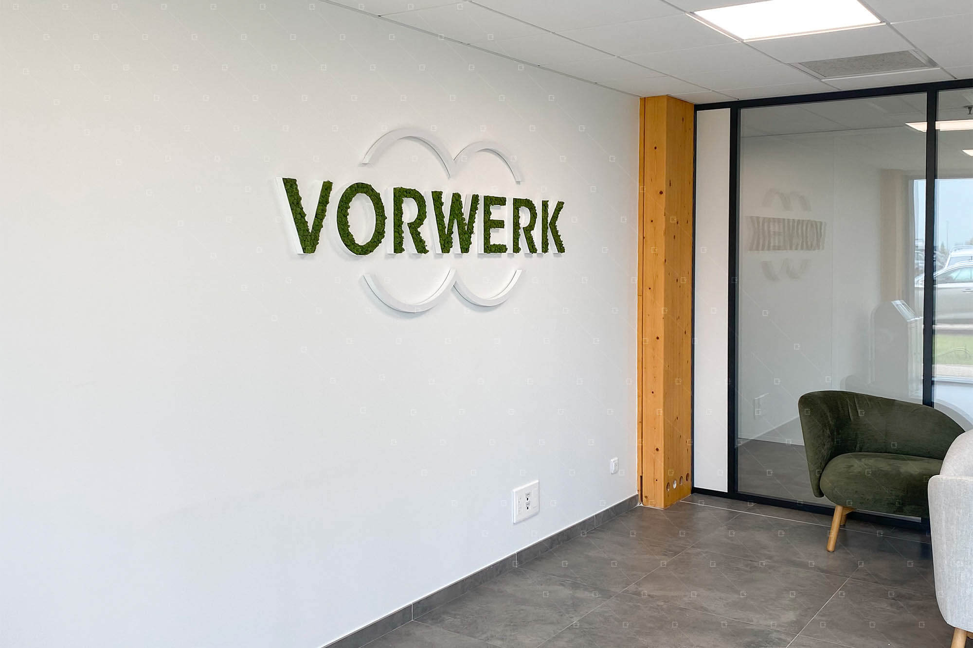 La première impression compte, c’est en cela que le lettrage végétal s’impose comme une solution de signalétique innovante qui allie esthétique, nature et identité de marque. Vorwerk, entreprise reconnue pour son excellence et son innovation, a choisi de collaborer avec Cadre Vert pour accentuer le côté identitaire de sa salle d’attente. L’intégration d’un lettrage végétal sur mesure crée une signature visuelle unique qui valorise l’image de l’entreprise. Ce projet illustre parfaitement comment le décor végétal intérieur peut devenir un véritable outil de communication et de branding.