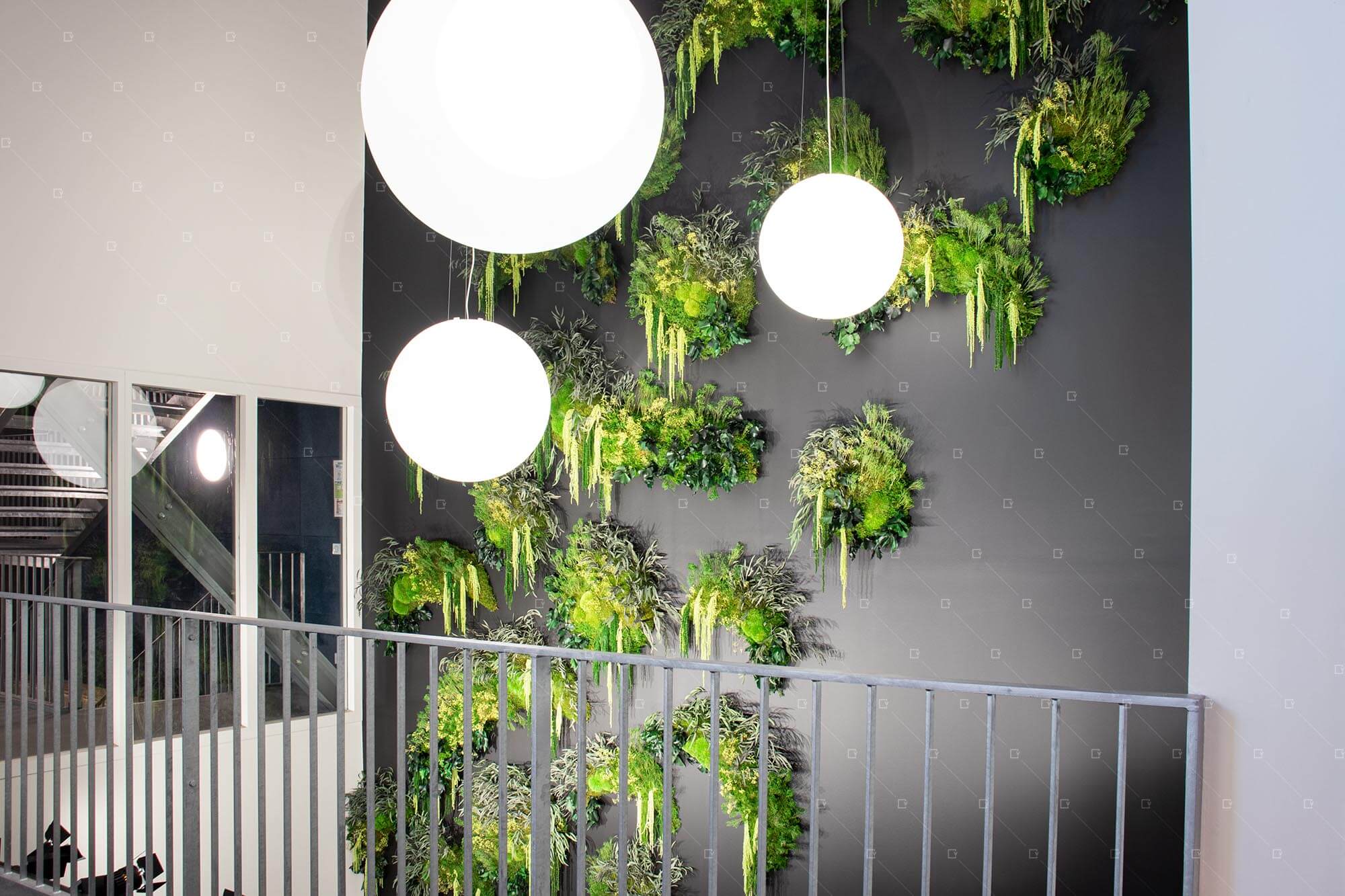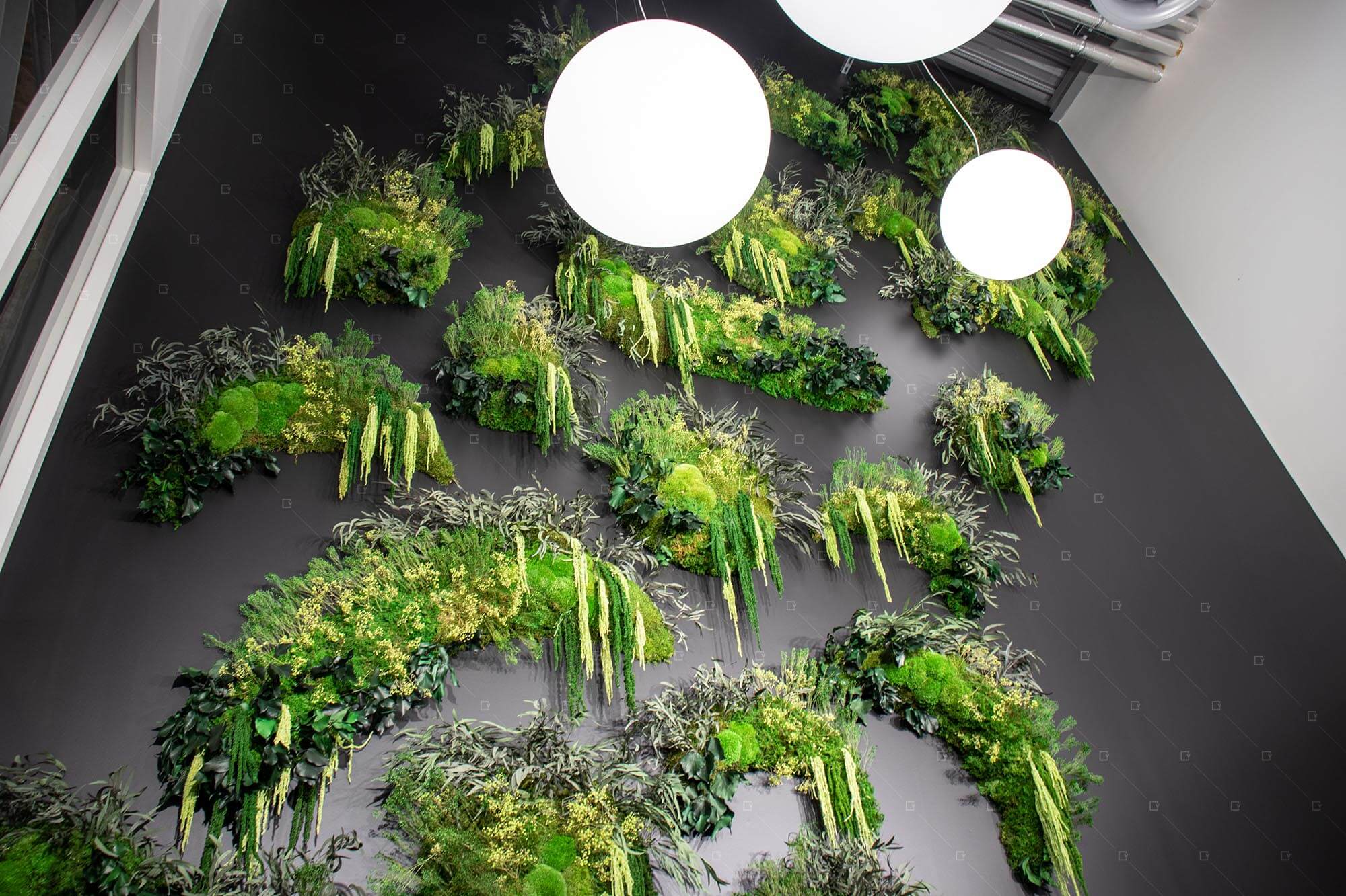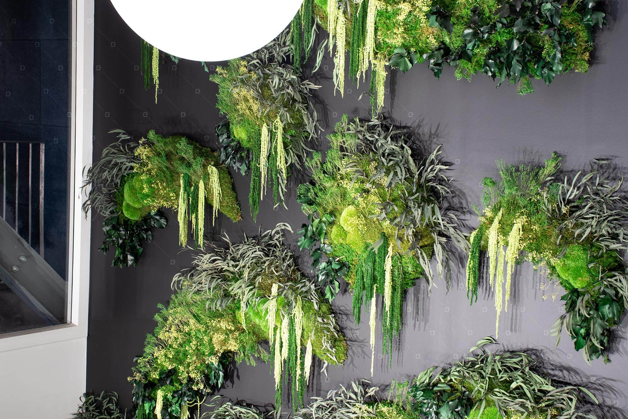 L’un des atouts majeurs de cette réalisation réside dans l’expertise du design végétal par le choix des végétaux stabilisés. Cette technique, qui consiste à remplacer la sève naturelle par une solution de conservation à base de glycérine, permet de figer les plantes dans leur état optimal. Le résultat est un mur végétal sans entretien, qui conserve son aspect esthétique durant de nombreuses années sans nécessiter d’arrosage, de taille ou d’éclairage alimentaire.