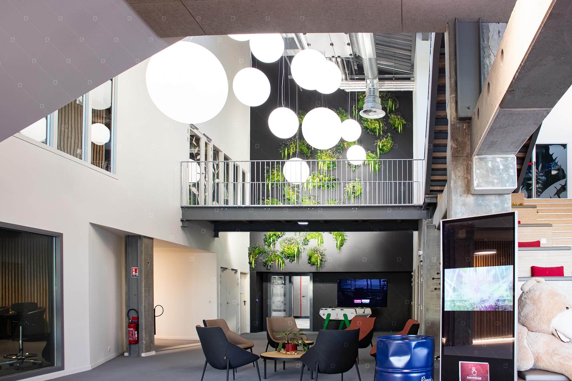 Au-delà de l’aspect esthétique, ce type d’installation contribue également à améliorer le confort de l’espace. Les surfaces végétales participent naturellement à la régulation acoustique des lieux de passage et d’accueil, en atténuant la réverbération sonore. Dans un hall d’entrée aux volumes importants comme celui du siège social de L’Union à Reims, cette propriété représente un bénéfice supplémentaire très intéressant pour le confort des visiteurs et des collaborateurs.